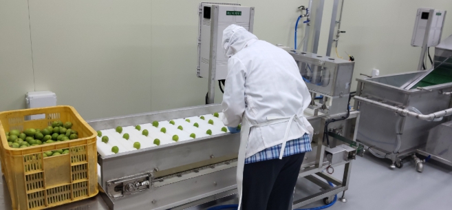 가공시설에서는 매실 원물을 세척·탈수·씨 분리하는 등의 1차 가공은 물론, 절임기·배합기·건조기 등을 활용해 매실청, 건과일, 과일잼 등을 생산하는 2차 가공까지 가능하다.