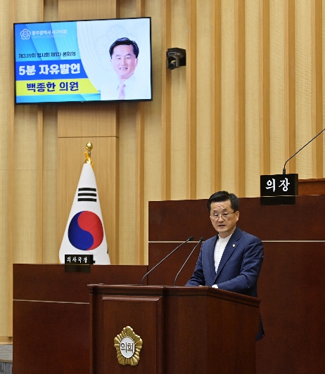 또한 백 의원은 발언 말미에서 “보이지 않는 곳에서 주민을 위해 헌신해 온 공직자들의 노력에 깊이 감사드린다”며 “앞으로도 주민이 체감할 수 있는 변화로 이어지는 행정을 펼쳐달라”고 당부했다.