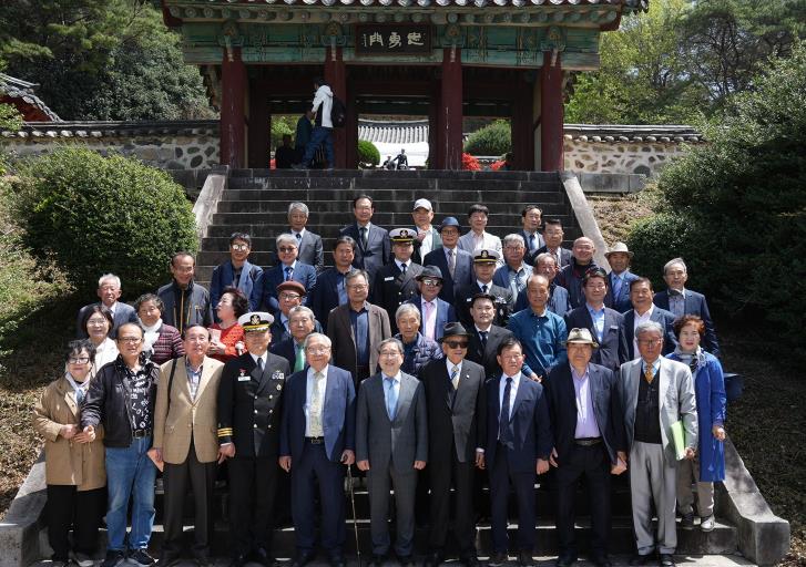 ![]() ‘나대용 장군 제414주기 추모제’에 참석한 관계자들이 단체 기념사진을 찍고 있다. |