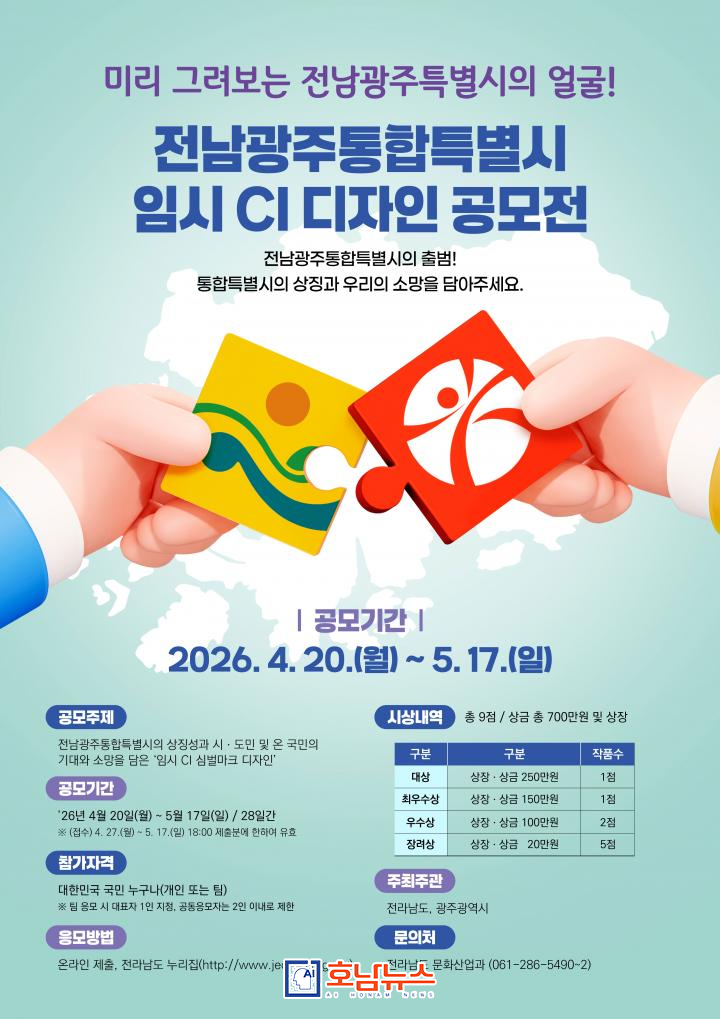 The two local governments announced that they will accept submissions for the “Temporary CI (Corporate Identity) Symbol Mark” of the Jeonnam–Gwangju Integrated Metropolitan City for 28 days, until May 17, with participation open to all citizens nationwide.