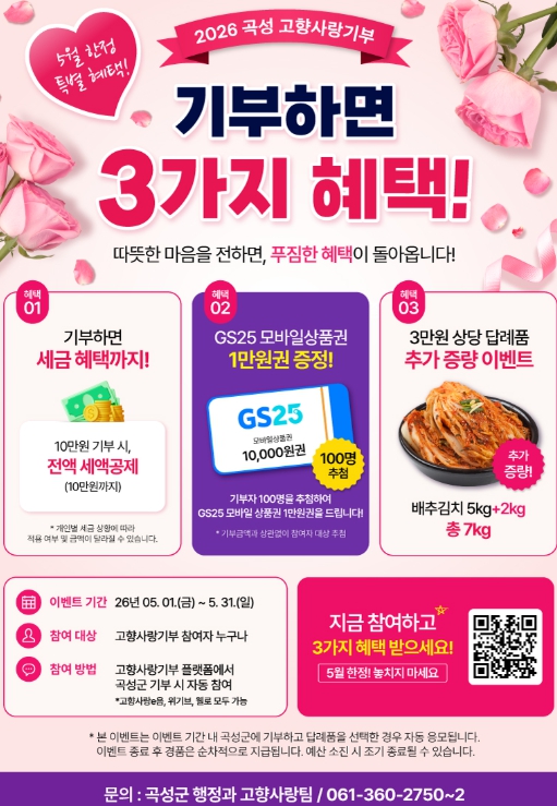 ![]() 2026년 곡성 고향사랑기부 안내 포스터 |