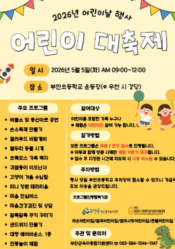 ![]() 부안군, 어린이날 맞이 ‘어린이 대축제’ 개최 |