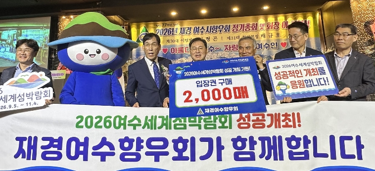 ![]() (재)2026여수세계섬박람회조직위원회(이하 ‘조직위’)는 지난 26일 재경여수향우회 회장 이취임식에서 향우회와 2,200만 원 상당의 입장권 구매약정을 체결했다. |