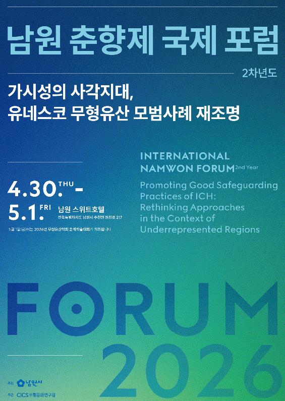 ![]() 남원시,『2026 춘향제, 가시성의 사각지대, 무형유산 모범사례 재조명 국제포럼』 개최… |