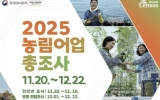 함평 박인석 기자2025. 12.02[AI 호남뉴스]완도군은 12월 22일까지 관내 모든 농가·임가·어가(해수면, 내수면)를 대상으로 '2025 농림 어업 총조사'를 실시한다. 총조사는 국가데이터처 주관으로 농림, 어가의 규모, 분포, 구조 및 경영 형태를 파악하여 농림 어업 정책 수립의 기초자료로 활용하기 위해 5년 주기로 실시하는 국가 지정 통계조사이다. 조사 대상은 12월 1일 기준 관내 농림, 어가 약 1만 1,000가구이며, 조사 항목은 경영 형태, 스마트 농업, 주 종사 분야, 판매 금액 등 총 4개 분야 133개 항목으로 구성되어 있다. 이번 조사를...