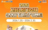 광주광역시 박인석 기자2026. 01.21[AI 호남뉴스]장흥군은 설 명절을 앞두고 고향사랑기부제 활성화를 위해 1월 20일부터 2월 20일까지 ‘2026 설맞이 고향사랑기부제 더 드림 이벤트’를 진행한다. 이벤트 기간 중 ‘고향사랑e음’을 통해 장흥군에 10만 원 이상 기부하면 별도의 신청 절차 없이 자동으로 이벤트에 응모된다. 해당 조건을 충족한 기부자 전원에게는 모바일 상품권 5,000원이 경품으로 제공된다. 또한 이벤트 종료 후에는 무작위 추첨을 통해 10명을 선정, 5,000원권 모바일 상품권을 추가로 증정하는 혜택도 마련돼 있어 최대 1만 원 상당의 경품을...