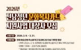 남원 박인석 기자2026. 03.25[AI 호남뉴스]화순군은 지역 청년들의 자기 계발과 문화생활 기회를 확대하기 위해 ‘2026년 전남 청년 문화복지카드 지원사업’ 대상자를 오는 3월 31일까지 모집한다고 밝혔다. 이 사업은 청년들에게 도서, 영화, 공연, 학원 수강, 체육시설 이용, 여행 등 폭넓은 문화·복지 활동을 지원하여 지역 정착을 돕는 사업이다. 선정된 청년에게는 1인당 연 최대 25만 원의 체크카드 포인트가 지급된다. 지원 대상은 현재 화순군에 주소를 두고 2024년 2월 9일 이전부터 도내에 2년 이상 거주한 청년으로, 1998년부터 2007년 사이...