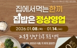 고흥 박인석 기자2026. 01.08[AI 호남뉴스]고흥군이 운영하는 온라인 농수축특산물 쇼핑몰 ‘고흥몰’이 가정 내 식사를 보다 간편하고 실속 있게 즐길 수 있도록 돕기 위해 집밥 중심 기획전을 운영한다. 이번 행사는 ‘집에서 먹는 한 끼, 집밥은 정상영업’을 주제로, 밀키트·반조리 식품·국·찌개류·밑반찬 등 집에서 손쉽게 준비할 수 있는 상품을 중심으로 최대 30% 할인 혜택을 제공한다. 행사 기간은 1월 8일부터 14일까지다. 특히 조리 부담을 줄이면서도 일상적인 식사를 꾸준히 이어갈 수 있도록 실용성과 활용도가 높은 상품 구성을 강화했으며, 맞벌이 가구...