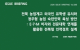 전라북도도 박인석 기자2026. 03.19[AI 호남뉴스] 전북연구원은 19일 농업계고 특성화고·마이스터고 외국인 유학생을 육성형 전문기술인력(E-7-M) 비자와 연계한 새로운 인력 양성 모델인 ‘전북형 농생명 숙련인력 패스웨이’를 제안했다. 이번 이슈브리핑에서 전북연구원은 ‘농업계고 유학생(D-4-3)-전북 농생명 특성화 전문대학(D-2)-전북 농생명기업 취업(E-7-M)-인구감소지역 정주(F-2)’로 이어지는 4단계 경로를 제시했다. 또한, 기존 단기·단순노동 중심 외국인력 정책을, 전북에 장기 정착하는 농업 숙련인력을 체계적으로 육성하는 전략으로 전환해야 한다...