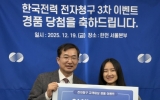 전주 박인석 기자2025. 12.23[AI 호남뉴스]한국전력이 전기요금 전자청구서 이용 확대를 통해 고객 편의성을 높이는 동시에 탄소 감축이라는 사회적 가치 실현에 속도를 내고 있다. 한전은 지난 12월 19일에 서울 중구 서울본부에서 전자청구서 신청 이벤트 당첨자에게 경품 전달식을 진행하고 전자청구서 이용 고객이 1,500만 호를 넘어섰다고 발표했다. 이는 전체 전기사용 고객 2,500만 호 가운데 60% 이상이 종이 청구서 대신 모바일·전자 방식의 청구 서비스를 이용하고 있는 것이다. 이 같은 성과는 지난해부터 추진해 온 전자청구서 신청 이벤트와 고객 서비...