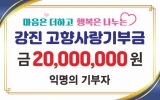 강진 박인석 기자2025. 12.23[AI 호남뉴스]강진군이 2023년 고향사랑기부제도 시행 이래 첫 2천만 원 기탁자가 탄생했다고 밝혔다. 연간 기부 한도가 2천만원으로 상향된 올해 첫 최고액 기부자가 탄생했다. 해당 익명의 기부자는 강진군과 군민을 위해 기부금을 잘 써달라며 그 이상의 내용 언급을 정중하게 거절해 잔잔한 울림을 더했다. 강진군 관계자는 “강진을 사랑하는 기부자님의 감동적인 실천에 대단히 감사드린다”라며 “2026년에도 기부자의 자긍심이 될 수 있도록 ‘강진품애 기댄 일상동행 서비스’를 비롯한 기금사업을 성실히 추진하고, 품질 좋은 강진 답례...
