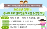 여수 박인석 기자2026. 03.12[AI 호남뉴스]여수시가 지역 유소년을 대상으로 ‘2026년 상반기 주니어 토요 인라인롤러 교실’을 운영하고 오는 3월 16일부터 20일까지 수강생을 선착순 모집한다. 이번 프로그램은 관내 유치원생과 초등학생 50명을 대상으로 진행되며 여수시청 직장운동경기부 롤러팀 선수들이 재능기부 형식으로 직접 지도에 나선다. 참가자들은 기본적인 롤러교육과 기초기술을 배우고 인라인롤러 주행 능력을 향상할 수 있는 다양한 기술을 익히게 된다. 신청은 수강을 희망하는 유치원·초등학생 보호자가 여수시OK통합예약시스템을 통해 신청할 수 있다. ...