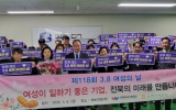 전라북도도 박인석 기자2026. 03.06[AI 호남뉴스]전북특별자치도는 6일 제118회 세계 여성의 날을 맞아 전북여성가족재단, 농협중앙회 전북본부와 함께 여성친화기업 제논전장㈜를 방문해 여성 근로자들을 격려하고 성평등 조직문화 확산을 위한 기념행사를 개최했다. 행사에는 방상윤 전북자치도 복지여성보건국장, 허명숙 전북여성가족재단 원장, 김성훈 농협은행 전북본부장이 참석해 여성 근로자들에게 장미꽃과 빵을 전달하며 세계 여성의 날의 의미를 함께 나누고 근로자들을 격려했다. ‘빵’은 생존권과 노동권을, ‘꽃’은 참정권과 존엄을 상징한다. 이번 행사는 세계 여성의 날의 의미...