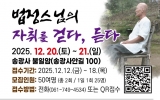 순천 박인석 기자2025. 12.15[AI 호남뉴스]순천시는 법정스님의 삶과 정신을 시민들과 함께 나누기 위한 인문 체험 프로그램 '법정스님의 자취를 걷다, 듣다'를 오는 20일부터 21일까지 송광사 불일암 일원에서 운영한다고 밝혔다. 이번 프로그램은 법정스님의 수행 터전이었던 불일암에서 진행되는 시민 참여형 인문 프로그램으로, 총 2회(회당 25명) 운영하며 총 50여 명이 참여할 수 있다. 접수는 오는 18일까지 전화(061-749-4534) 또는 QR코드로 신청 가능하다. 특히 이번 프로그램은 최근 예비문화유산으로 선정된 ‘법정스님 빠삐용 의자’와 함께 ...