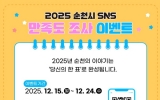 남원 박인석 기자2025. 12.15[AI 호남뉴스]순천시는 시 공식 SNS 채널 이용자들을 대상으로 ‘2025년 순천시 SNS 만족도 조사 이벤트’를 개최한다고 밝혔다. 이번 행사는 시민들이 시정 소식을 보다 쉽고 재미있게 접할 수 있도록 운영 중인 순천시 공식 SNS 채널에 대해 만족도를 조사하고, SNS 참여형 이벤트를 통해 소통을 강화하기 위해 마련됐다. 참여 방법은 시에서 운영하는 SNS 채널 유튜브와 당근마켓을 구독한 후, 온라인 설문조사에 응한 이용자를 대상으로 진행된다. 설문조사와 이벤트는 15일부터 26일까지 운영될 예정이며, 추첨을 통해 25...