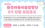 익산 박인석 기자2026. 02.25[AI 호남뉴스] (재)완주문화재단은 오는 2월 24일부터'완주아동이음합창단'3기 단원 30명을 공개 모집한다고 밝혔다. '완주아동이음합창단'은 장애·비장애·다문화·학년이 함께 어우러지는 통합형 문화예술교육 프로그램으로, 정기연습과 지역 축제, 합창 경연대회 등 다양한 공연 활동을 통해 아동들이 서로를 이해하고 협력하며 공동체 의식을 키울 수 있는 기회를 제공한다. 모집 대상은 완주군 거주 아동(초등학교 1~6학년)으로, 접수 기간은 2월 24일부터 3월 13일까지이다. 정기 연습은 오는 3월부터 11월까지 매주 월요...