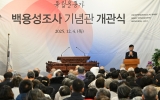 [AI 호남뉴스]장수군은 4일 장수군을 대표하는 독립운동가이자 민족대표 33인인 백용성 조사의 정신을 기리고 계승하기 위한 ‘독립운동가 백용성 조사 기념관’ 개관식을 성황리에 마쳤다고 밝혔다. 이날 개관식에는 백용성조사 기념사업회 법륜스님과 유수스님, 김관영 전북특별자치도지사, 강윤진 국가보훈부 차관, 최훈식 장수군수, 최한주 장수군의회 의장, 지역 기관·단체 관계자, 주민 등 약 450명이 참석해 기념관 개관을 함께 축하했다. 참석자들은 기념식과 전시 관람을 통해 백용성 조사의 항일정신과 불교계 독립운동의 의미를 되새기는 ...