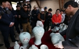 전라북도도 박인석 기자2026. 02.22[AI 호남뉴스]1300˚C를 견딘 청자의 빛은 영롱하기만 하다. ‘흙과 불 그리고 사람의 이야기’를 주제로 열리고 있는 제54회 강진청자축제. 지난 22일 강진군 대구면 고려청자박물관 제2호가마에서 화목가마 요출행사가 열린 가운데 옛 전통방식 그대로 소나무 장작을 이용해 48시간 동안 구워낸 청자를 꺼내고 있다.