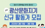 광산구 박인석 기자2026. 02.22[AI 호남뉴스]광주 광산구가 광산구 문화예술 온라인 홍보단 ‘2026년 광산문화지기’ 참여자를 3월 10일까지 모집한다. ‘광산문화지기’는 광산구의 다양한 문화예술 공연과 행사 현장을 직접 취재하고, 누리소통망(SNS)에 생생한 후기를 작성, 공유하는 온라인 홍보단이다. 광산문화지기는 4월부터 12월까지 약 9개월간 활동한다. 모집 인원은 10명 내외로, 문화예술에 관심이 많고 누리소통망(SNS) 활용이 능숙한 시민이라면 누구나 참여할 수 있다. 참여 방법은 광산구 누리집 새소식에서 신청 서류를 내려받아 3월 10일까지 전자...