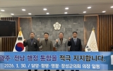 장성 박인석 기자2026. 01.30[AI 호남뉴스]담양군의회가 인구 소멸 위기 극복과 지역 경쟁력 강화를 위해 인근 의회와 손을 맞잡고 광주-전남 행정통합 추진에 힘을 보탰다. 담양·함평·영광·장성군 의장단은 ‘광주-전남 행정통합 염원 공동 퍼포먼스’를 펼치며, 행정구역의 경계를 넘어선 초광역 협력 체계 구축에 대한 강력한 의지를 표명했다. 이번 퍼포먼스는 단순한 선언을 넘어, 광주와 전남이 하나의 생활권이자 경제권으로 재편되어야만 수도권 집중화에 대응하고 자생적인 발전 동력을 얻을 수 있다는 절박한 공감대 속에서 마련됐다. 참석한 의장단은 성명을 ...