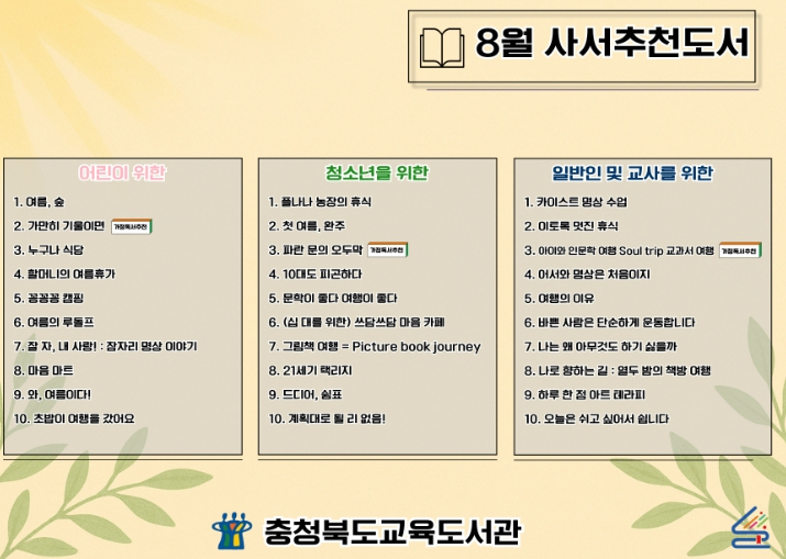 ![]() 8월 북큐레이션 사서추천도서 선정 |