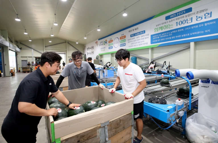 한편, 무주군 지역 내에 처음 수박 선별기 및 선별장이 설치된 것은 ‘23년으로 그해 1,007톤, ‘24년에 1,198톤의 수박을 자체 선별해 전국 농협하나로마트, 홈플러스, 롯데마트 등 도시 대형마트에 출하했다.
