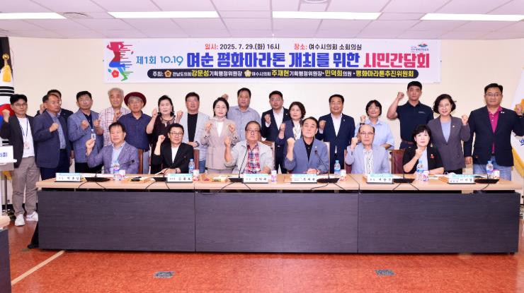 이번 간담회는 주재현 여수시의회 기획행정위원장·민덕희 의원, 강문성 전남도의회 기획행정위원장, 여순 평화마라톤 추진위원회가 공동 주최했으며,여순사건 유족회 및 군경유족회 관계자, 이미경 여수시의회 여순사건 및 과거사 진상규명 특별위원장, 최무경 전남도의회 석유화학대응특위 위원장·김화신 도의원 등이 참석해 다양한 의견을 제시했다.