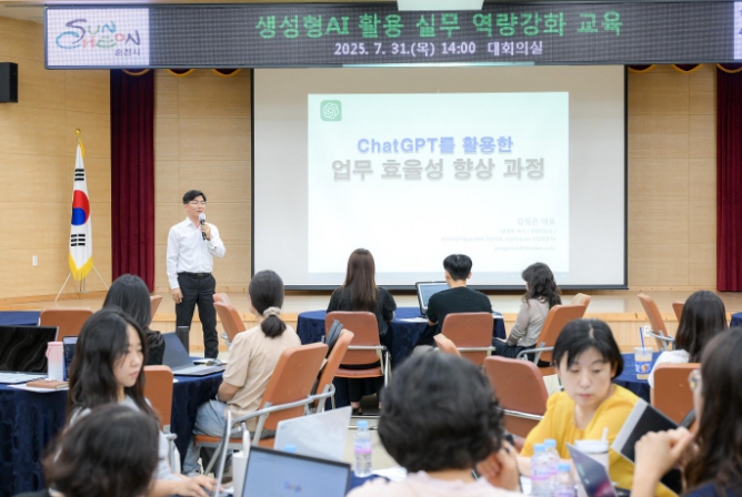 시는 2년 전, AI주권시대를 내다보고 노관규 시장이 직접 강연자로 나서 특강을 개최한 것을 시작으로 전문가 초청 특강, 챗GPT경진대회 등 다양한 AI 교육 프로그램을 운영해왔다. 현재는 다수의 직원들이 실제 업무에 챗GPT 등 생성형 AI를 적극 활용하고 있다.