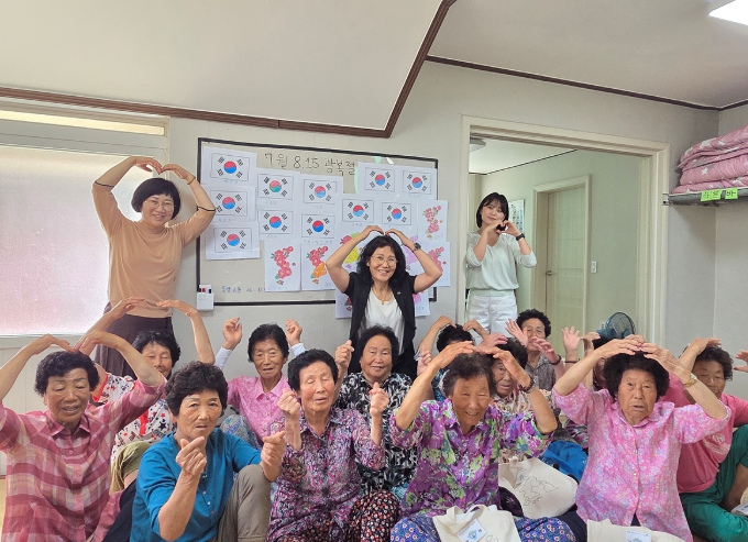이날 마을 어르신 20여 명이 참여한 가운데, ‘태극기’와 ‘광복절’ 써보기, 무궁화 모양 한반도·태극기 색칠하기 등의 문해교육 프로그램이 진행돼 큰 호응을 얻었다.