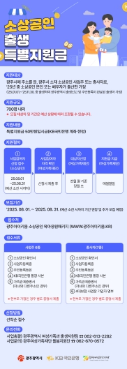 이영동 여성가족국장은 “광주시와 KB금융그룹이 함께 임신·출산 소상공인 가정의 새 가족을 맞이하는 기쁨을 나누고자 한다”며 “이번 사업을 통해 소상공인들의 경제적 부담을 조금이나마 덜어드리고, 지역사회의 따뜻한 관심 속에서 아이를 맞이할 수 있도록 최선을 다하겠다”고 말했다.