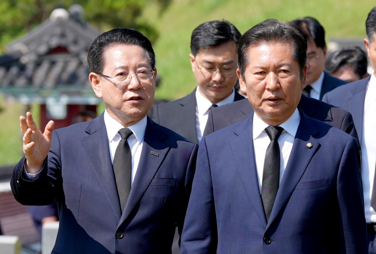 ![]() 정청래 후보와 김영록 지사(0615국립5.18민주묘지 참배 당시) |