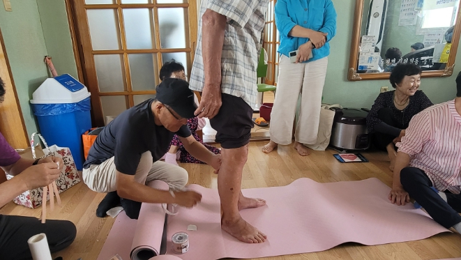 이날 활동에는 우석대학교 하태균교수와 수강생 6명 등 총 7명의 봉사자가 참여해, 직접 배우고 익힌 전문적인 마사지와 테이핑 기법을 실천에 옮겼다.