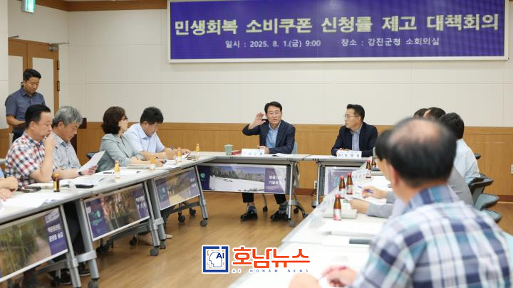 회의를 마무리하며 강진원 군수는 “이번 소비쿠폰은 단순한 지원금을 넘어, 군민들의 손에 바로 도움이 되는 돈을 쥐어 주고, 그 돈이 지역에서 돌 수 있도록 구조를 설계하는 것이 핵심”이라며 “일 잘하는 강진군이 앞장서서 지역경제 회복의 마중물이 되겠다”고 강조했다.