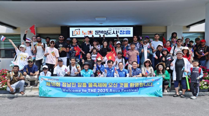 ![]() 지난 7월 26일 “제18회 정남진장흥 물축제”에 방문한 외국인 주민을 장흥군청 광장에서 김 성 군수는 환영하였다. |