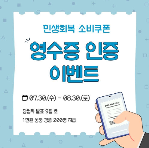 김종훈 경제부지사는 “민생회복 소비쿠폰을 빠르게 사용하고, 영수증 인증을 통해 경품도 받으며 지역경제 회복에 힘을 보태는 이번 캠페인에 많은 도민들의 적극적인 참여를 부탁드린다”고 밝혔다.