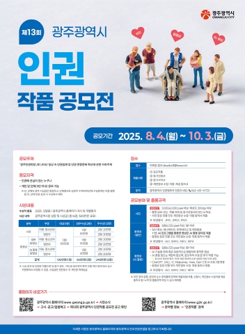 박용수 민주인권평화국장은 “이번 공모전을 통해 ‘광주인권헌장’의 가치를 널리 알리고, 인권 친화적 사회문화가 시민 일상 속에 자리잡기를 기대한다”며 “많은 시민들의 관심과 참여를 바란다”고 말했다.