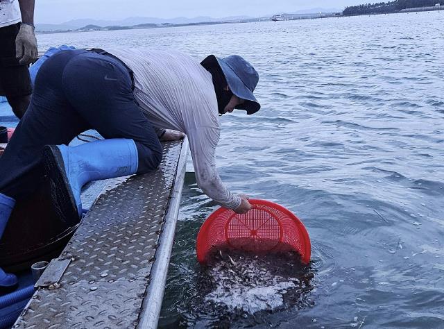 ![]() 지난 5일, 압해읍 해역에서 조피볼락 14만 마리를 긴급 방류했다. |