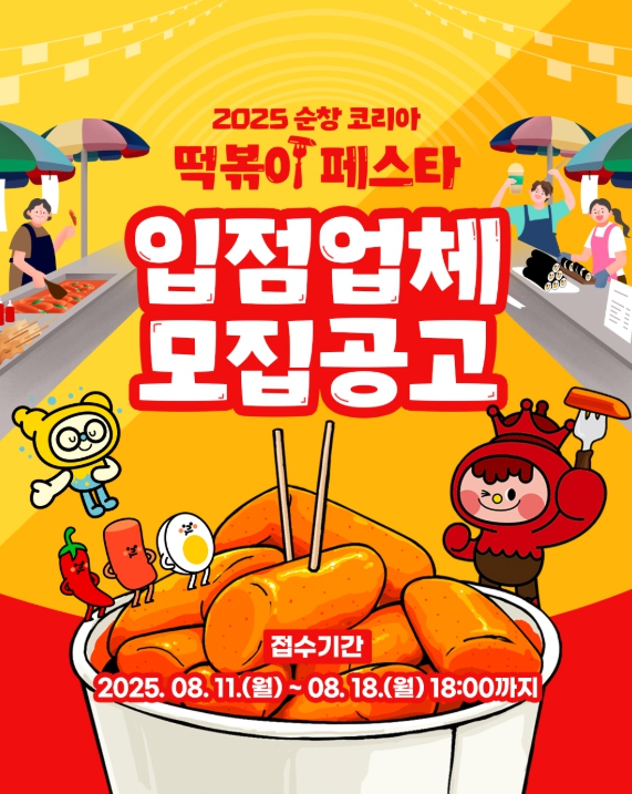 ![]() ‘2025 순창 코리아 떡볶이 페스타’, 판매부스 운영자 모집 |