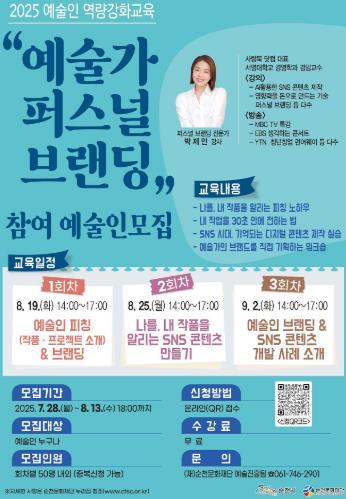 ![]() (재)순천문화재단, ‘예술가 퍼스널 브랜딩’ 참여 예술인 모집 |