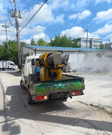 동 방역반은 주 1~2회 연무소독을 실시하고 필요시 유충구제를 병행하고 있으며, 초미립 연무소독 차량은 광범위한 지역을 대상으로 효과적인 방역을 진행 중이다.
