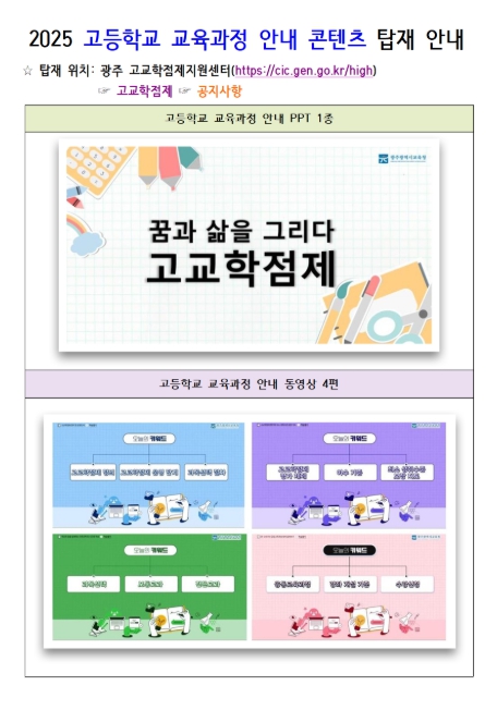 ![]() 2025 고등학교 교육과정 안내 콘텐츠 탑재 안내문 |