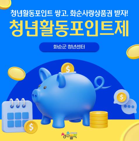 포인트 적립 대상 활동은 △화순군 청년센터 홍보게시물 게시 △청년센터 프로그램 참여 △청년센터 이용 설문조사 참여 △화순군 인구청년정책과 주관 행사 참여 등으로 다양하다.