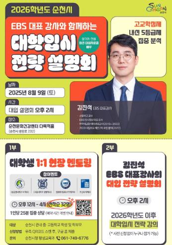 ![]() 순천시, 맞춤형 진로설계 2026학년도 대학 입시설명회 개최 |
