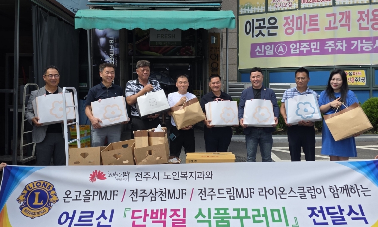 온고을 PMJF 라이온스 클럽(회장 이상칠)은 7일 단백질 결핍이 우려되는 의료-돌봄 대상 노인의 건강을 지원하는 ‘단백질 식품꾸러미’ 지원을 위한 첫 번째 활동을 실시했다.