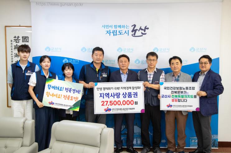 전북본부는 7일 군산시청 시장실에서 열린 행사에서, 총 2,700만 원 상당의 온누리상품권을 구매해 조합원들(약 509명)에게 전달했다고 밝혔다.