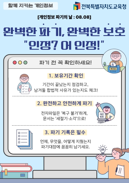 오선화 미래교육과장은 “‘개인정보 파기의 날’ 운영을 통해 개인정보 관리의 책임성과 실천력을 높이고, 불필요한 개인정보의 상시 점검·삭제 문화를 정착시켜 나가겠다”고 말했다.