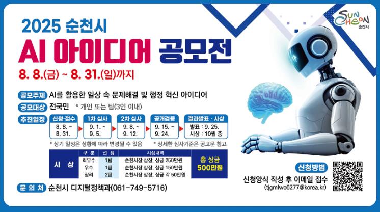 ![]() 순천시, ‘2025 AI 아이디어 공모전’ 개최 |