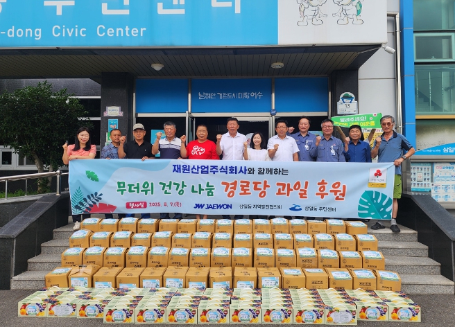 이날 전달 행사에는 재원산업 임직원과 삼일동주민자치위원 등 20여 명이 참여해 직접 경로당을 방문하면서 어르신들께 수박을 전달하고 안부를 살폈다.