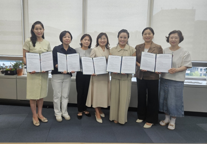 이날 협약식에는 국공립어린이집 전환사업으로 신규 선정된 어린이집 2곳(세븐팰리스·초록빛키즈)과 기존 5년의 위탁기간이 만료돼 재위탁 심사를 통과한 3개 어린이집(아이빛·데시앙열린·미듬)이 참여했다.