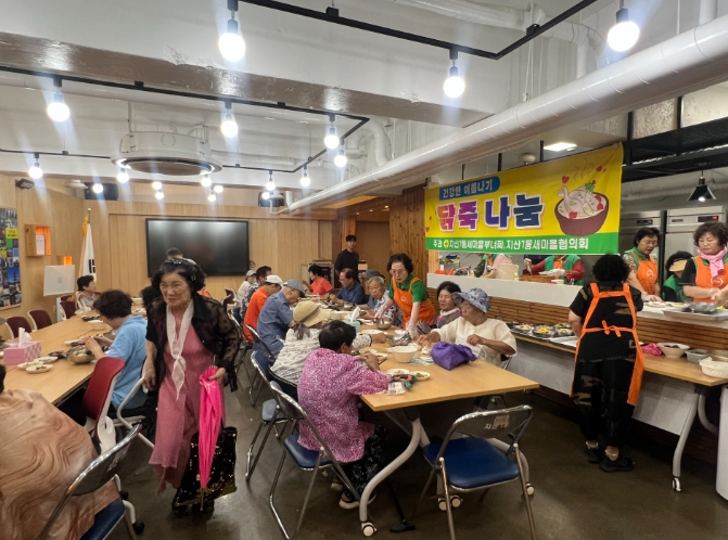 이번 행사는 연일 계속되는 폭염 속 어르신들의 건강한 여름나기를 위해 마련된 것으로, 부녀회 회원 15명이 이른 아침부터 삼계탕 150인분을 정성껏 준비해 뜻깊은 자리를 만들었다.